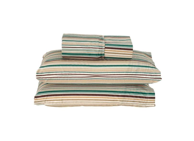 Jogo De Lençol King 180 Fios Dia A Dia Verde Listras 3 Peças