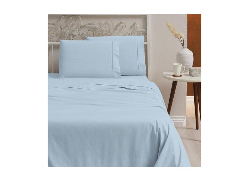 Jogo De Lençol King 3 Peças 100% Algodão 200 Fios Azul - Casa Fernando