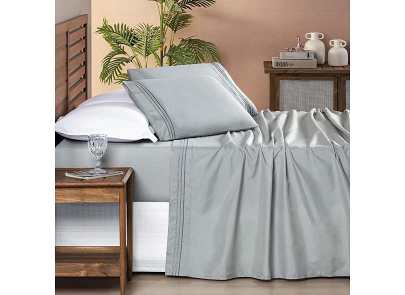 Jogo De Lençol King 4 Peças Allegra Bordado Cinza Geada