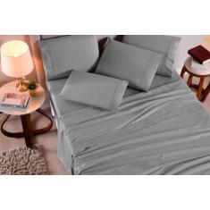 Jogo De Lençol King 4 Peças Cinza 100% Algodão 200 Fios - Paulo Cesar