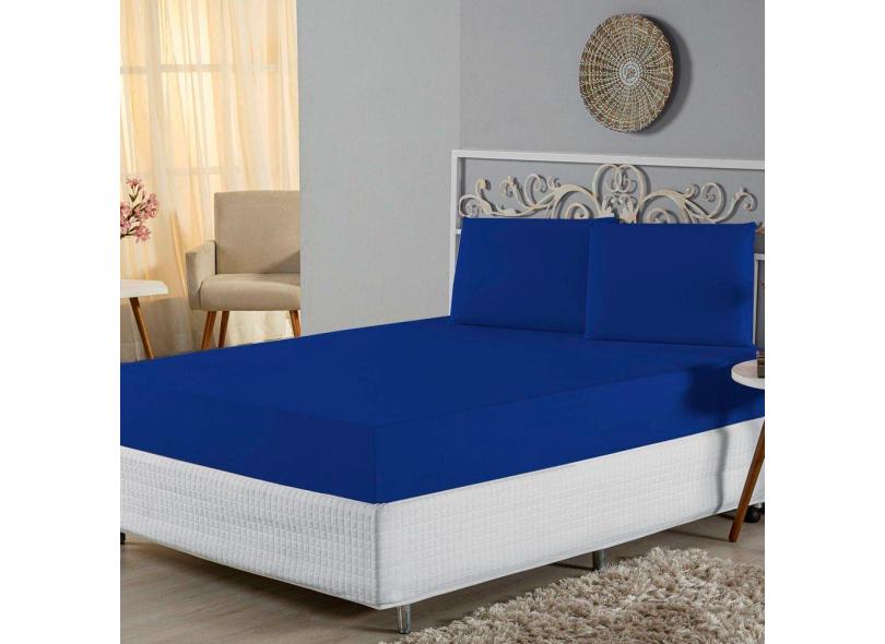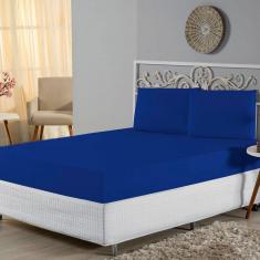 Jogo de Lençol King Malha 100% Algodão 3 Peças - Azul Royal