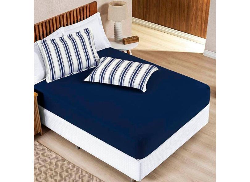 Jogo De Lençol King Marim Malha 100% Algodão 3 Peças Marinho