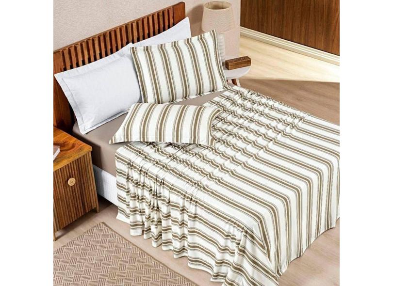 Jogo De Lençol King Marim Malha 100% Algodão Estampado 4 Peças Caqui
