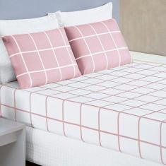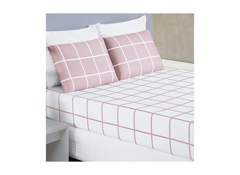 Jogo De Lençol King Micropercal 200 Fios Dustin 3 Peças - Rosa - Bia E