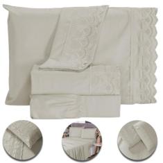 Jogo De Lençol King Size 4 Peças 400 Fios Micropercal Bordado Inglês T