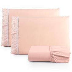 O menor preço encontrado no Brasil para Jogo De Lençol King Suave Barrado Lese 3 Peças Barato - Salmão atualmente é R$ 110,52.
