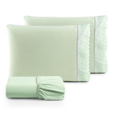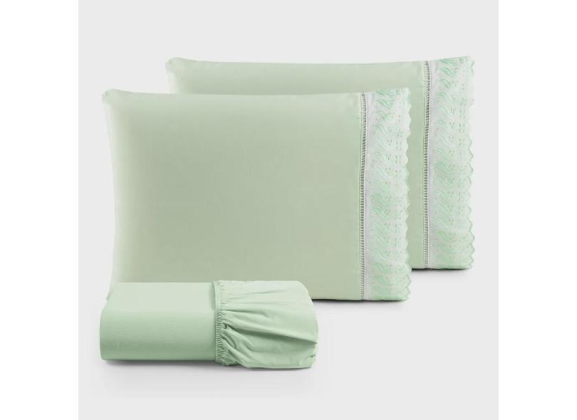 O menor preço encontrado no Brasil para Jogo de Lençol King Suave Barrado Lese 3 Peças Barato - Verde atualmente é R$ 110,52.