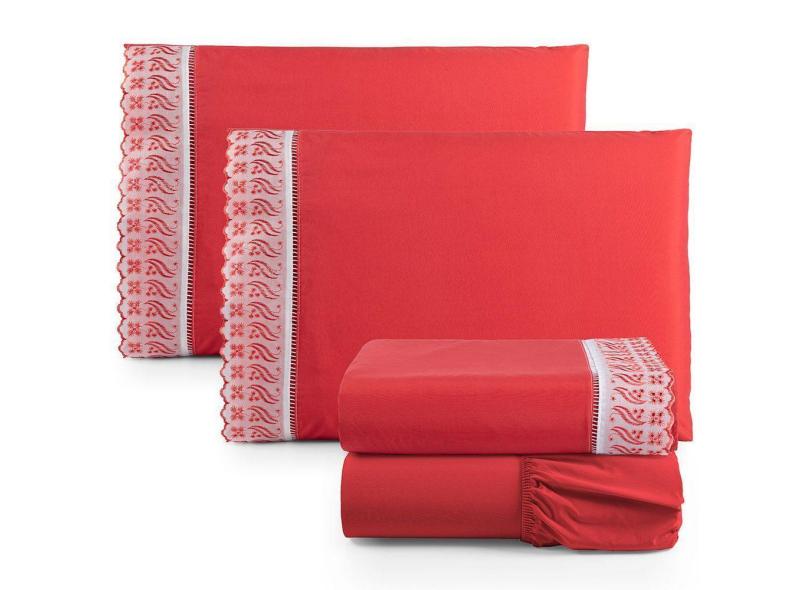 O menor preço encontrado no Brasil para Jogo De Lençol King Suave Barrado Lese 4 Peças Barato - Vermelho atualmente é R$ 219,42.