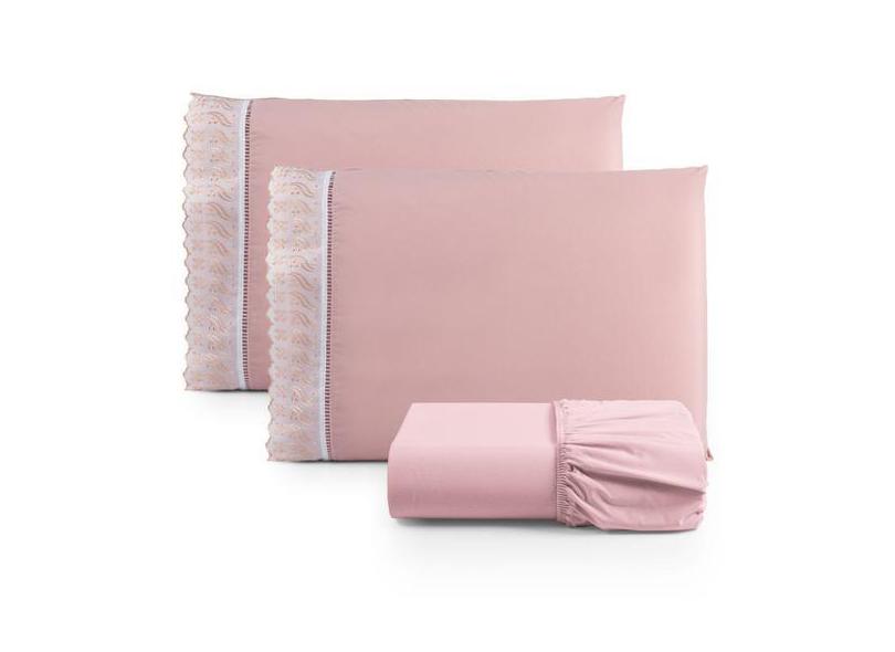 O menor preço encontrado no Brasil para Jogo De Lençol Lese King Percal 180 Fios 3 Peças - Rosê - Santos E Lua atualmente é R$ 146,39.