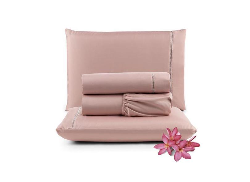 Jogo De Lençol Micro Percal King 300 Fios 4 Peças - Rosê - Santos E Lu