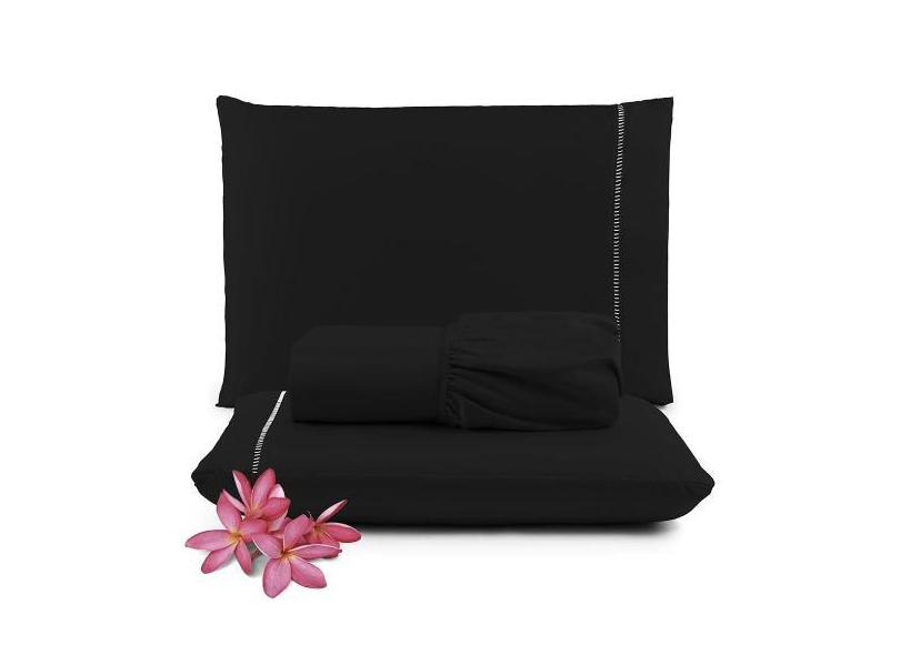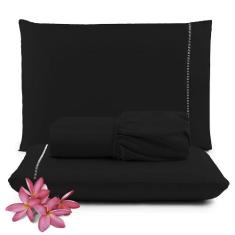 Jogo De Lençol Micropercal 400 Fios King - Preto - Casa Show Enxovais
