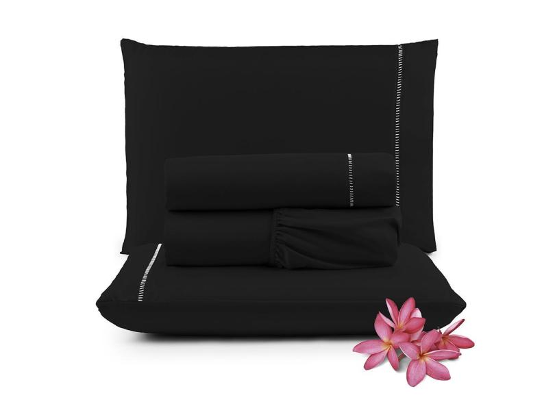 Jogo de Lençol Micropercal 400 Fios Padrão 4 Peças Barato - Marinho