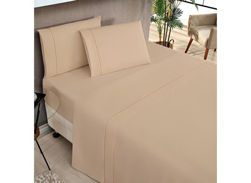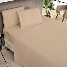 Jogo de Lençol Moscou Solteiro Ponto Palito 3 Peças Barato - Cáqui