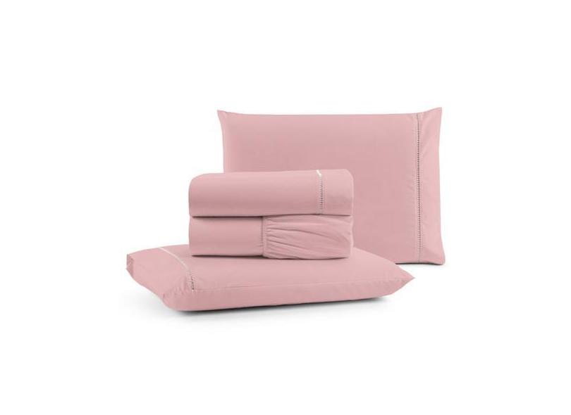 Jogo De Lençol Ponto Palito Casal 180 Fios 4 Peças - Rosê - Santos E L