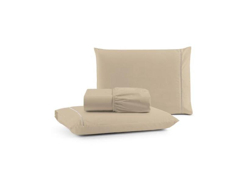 Jogo De Lençol Ponto Palito King 180 Fios 3 Peças - Avelã - Santos E L