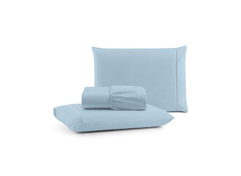 Jogo De Lençol Ponto Palito Queen 180 Fios 3 Peças - Azul - Santos E L