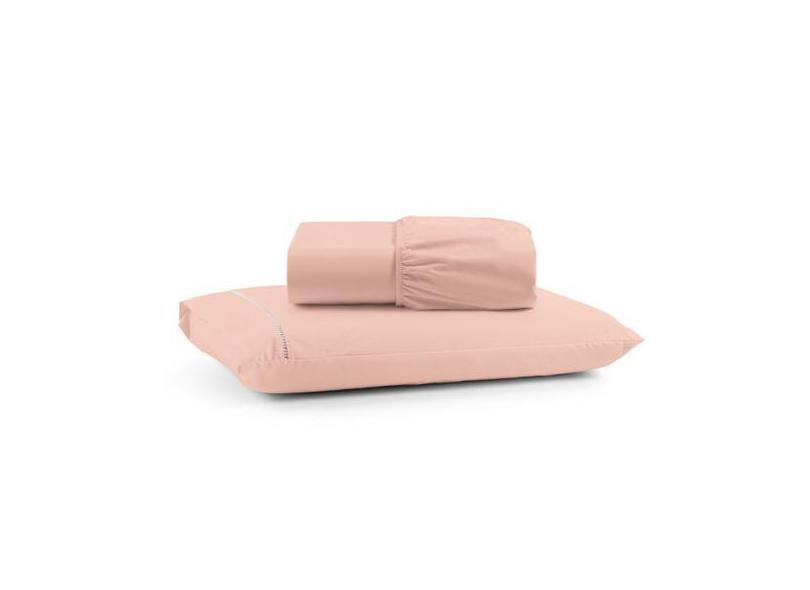 Jogo De Lençol Ponto Palito Solteiro 180 Fios 2 Pç - Salmão - Santos E