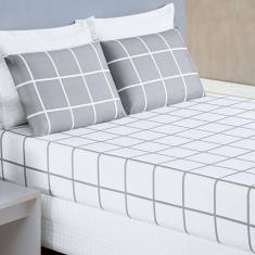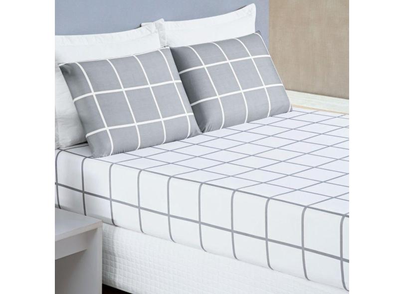 Jogo De Lençol Queen Austin Micropercal 200 Fios - 3 Peças Cor Xadrez Cinza