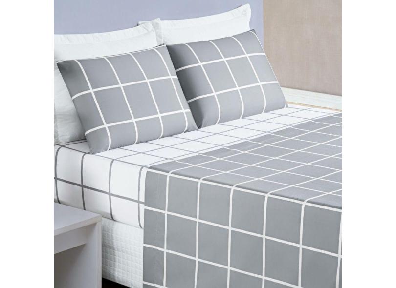Jogo De Lençol Queen Austin Micropercal 200 Fios - 4 Peças Cor Xadrez Cinza