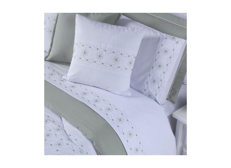 Jogo De Lençol Queen Damasco 4Pçs Bordado 100% Algodão 200 Fios Várias