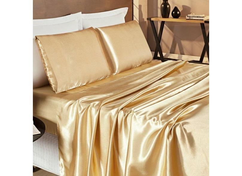 Jogo De Lençol Queen Romantic Cetim Charmousse 4 Peças Dourado