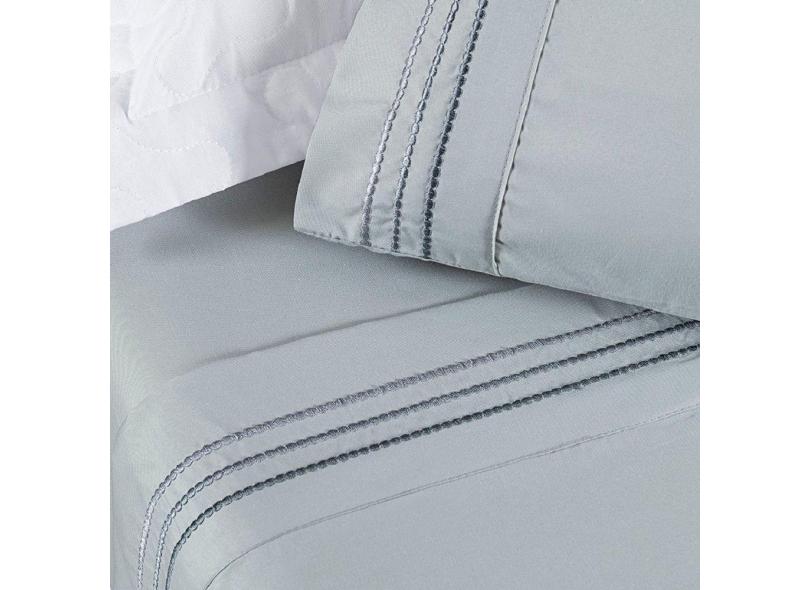 Jogo De Lençol Queen Yara Bordado 4 Peças Cinza