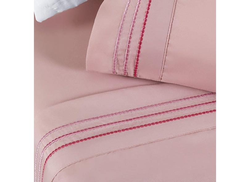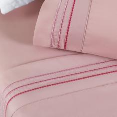 Jogo de Lençol Queen Yara bordado 4 peças Rosa