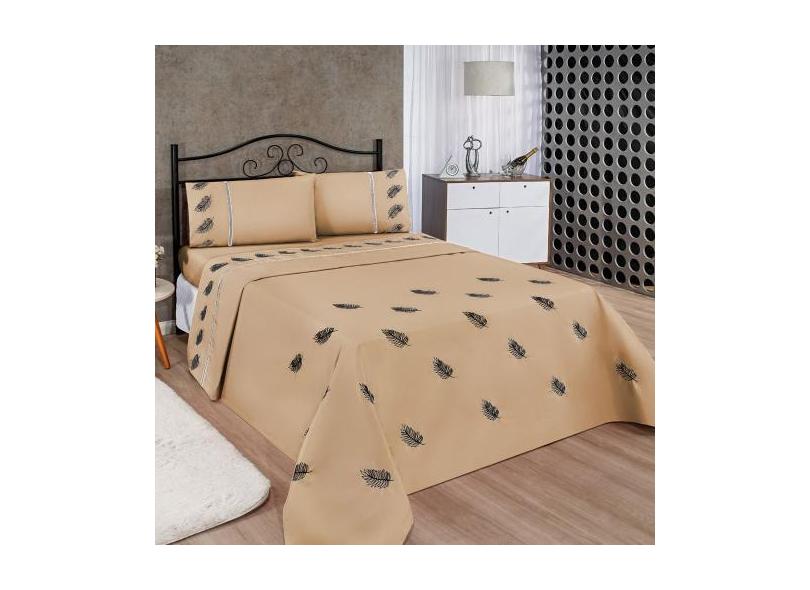 Jogo De Lençol Realeza Micropercal Bordado Super King 04 Peças - Avelã