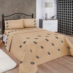 Jogo De Lençol Realeza Super King Micropercal Bordado 03 Peças - Avelã