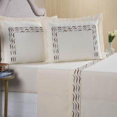O menor preço encontrado no Brasil para Jogo De Lençol Requinte Casal Queen 4 Peças Percal 180 Fios 100% Algodão - Palha atualmente é R$ 330,85.