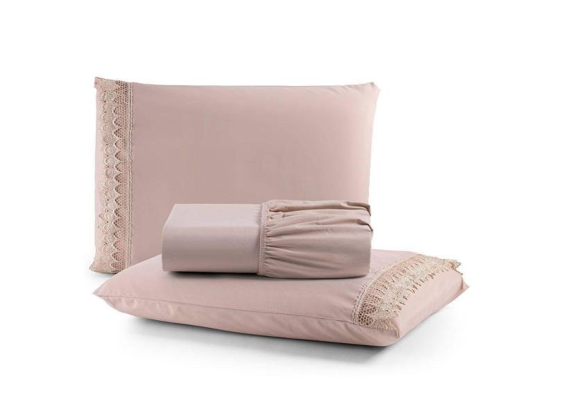 Jogo De Lençol Rubi Casal 3 Pçs 100% Algodão 200 Fios Ponto Palito Bordado - Avelã