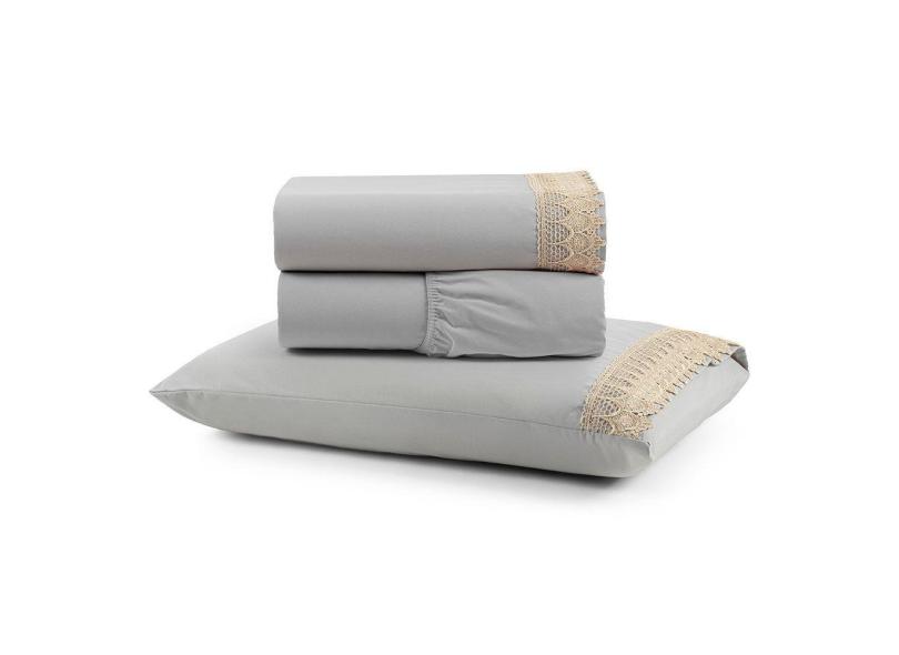 Jogo De Lençol Rubi Solteiro 3 Pçs 100% Algodão 200 Fios Ponto Palito Bordado - Cinza