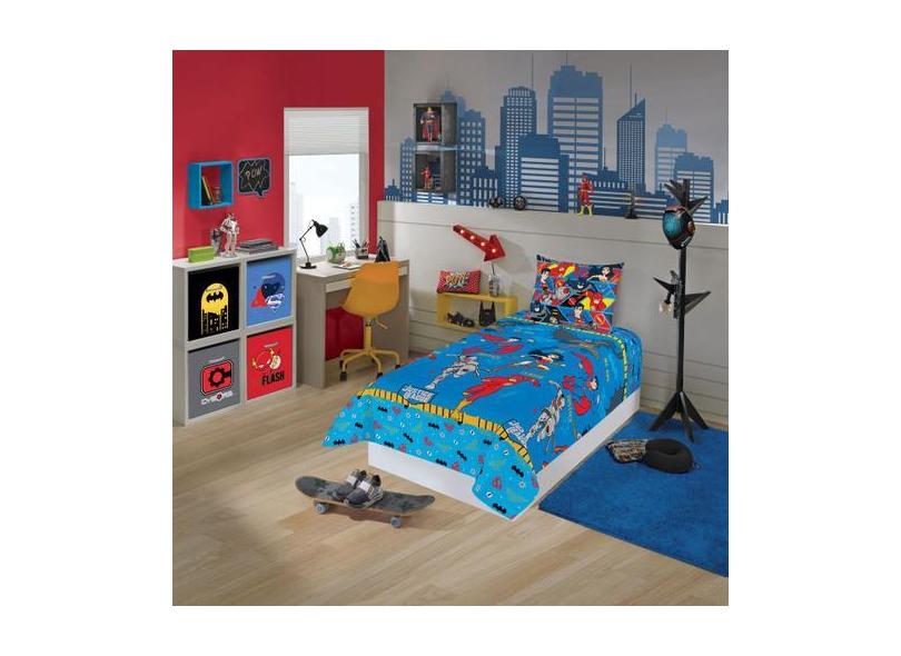 Jogo de Lençol Solteiro 03 Peças Microfibra Personagem Liga da Justiça