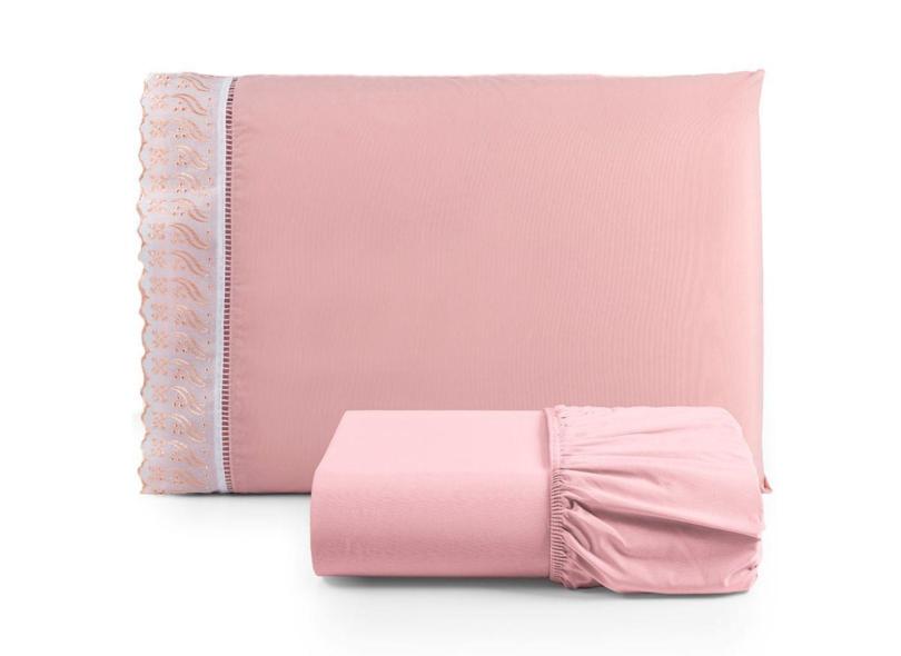 Jogo De Lençol Solteiro 2 Pçs Basic Percal 180 Fios Lese Bordado Inglês - Rosa