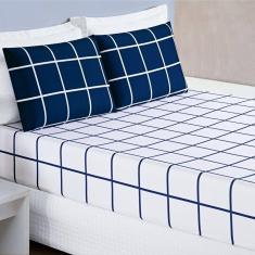 Jogo De Lençol Solteiro Austin Micropercal 200 Fios - 2 Peças Cor Xadrez Marinho