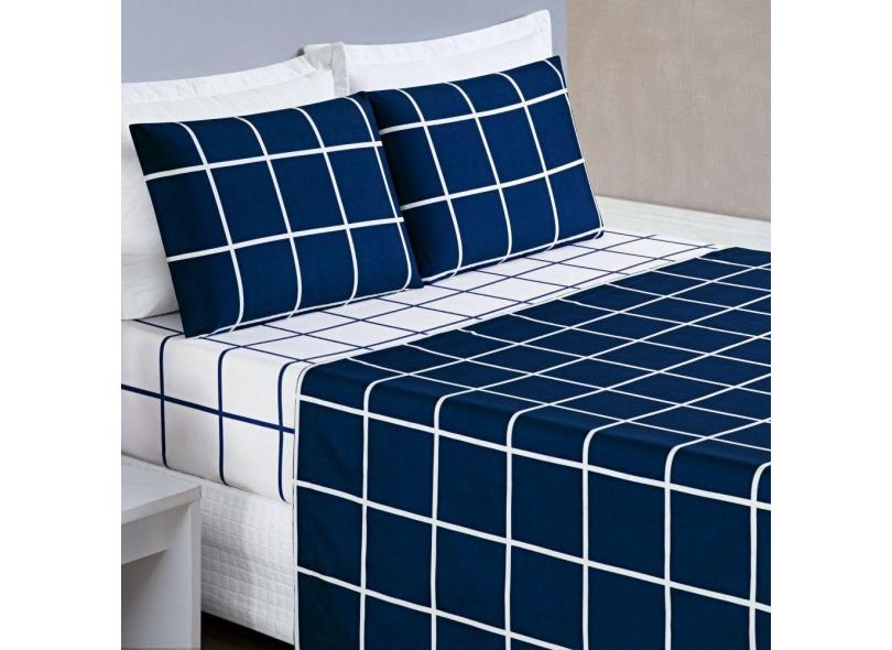 Jogo De Lençol Solteiro Austin Micropercal 200 Fios - 3 Peças Cor Xadrez Marinho