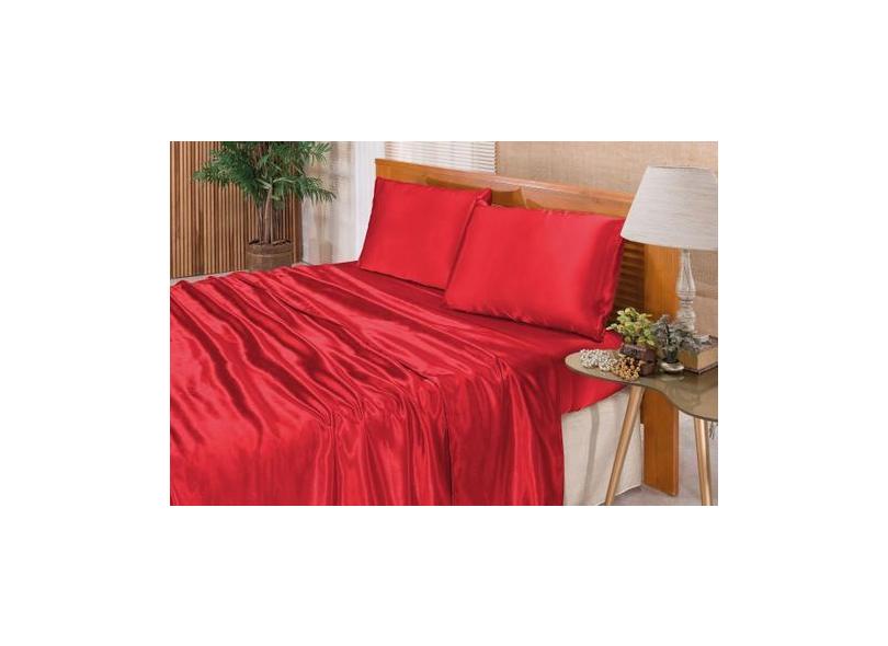 Jogo De Lençol Solteiro Cetim Seda Vermelho 3 Peças - Confecções Elba