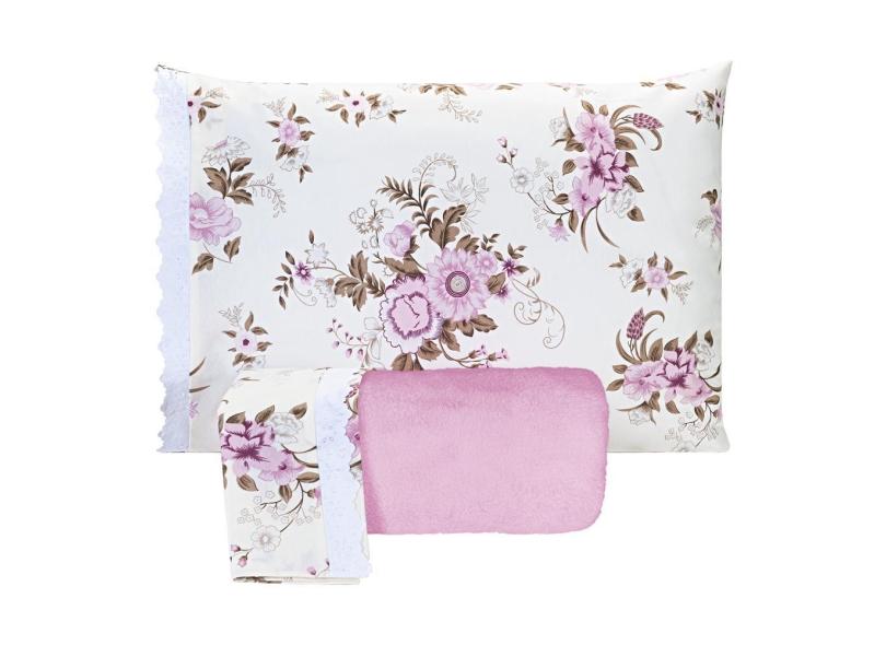 Jogo de Lençol Solteiro Manta Soft com Elástico 2 Peças- Flores Rosa