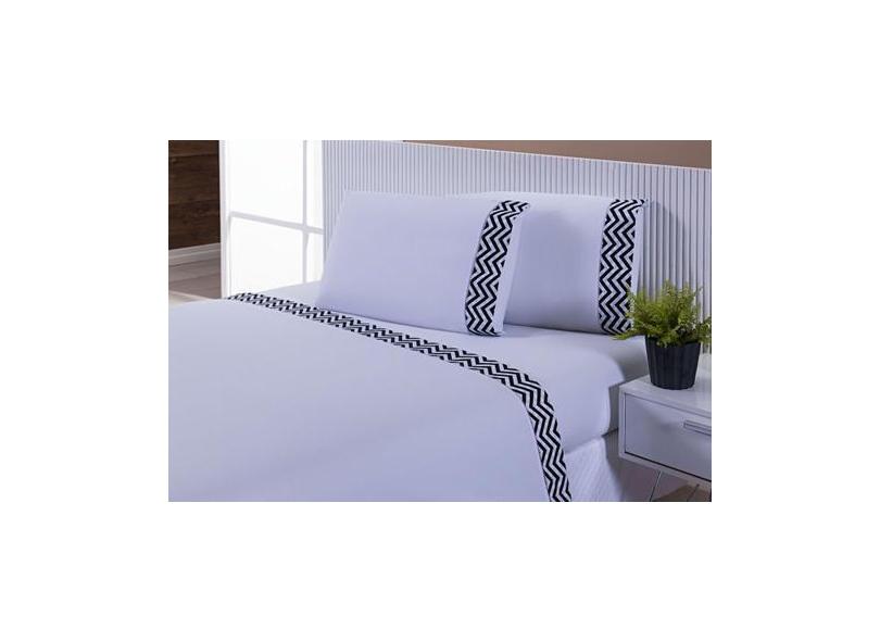 Jogo Lençol 4 Peças Cama Viúva 1,88M X 1,28M Percal Chevron - Miguel E