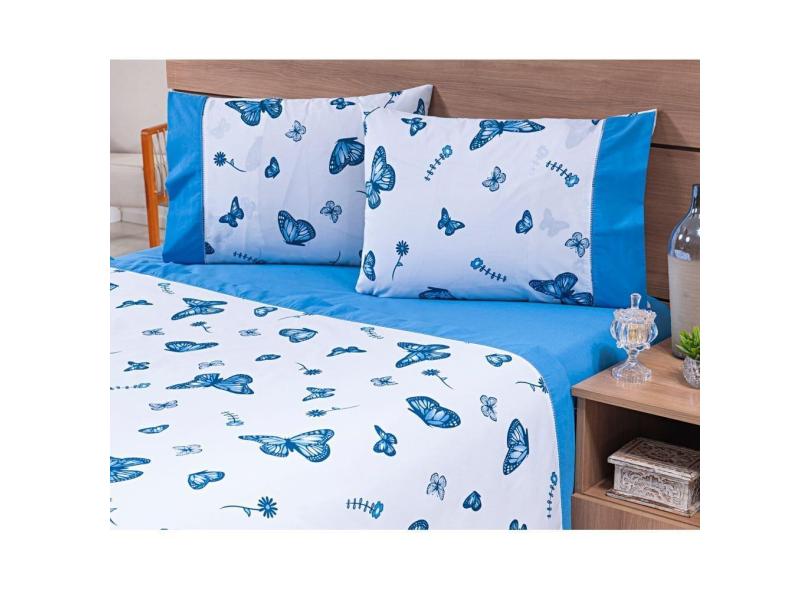 O menor preço encontrado no Brasil para Jogo Lençol 4 Peças Cama Viúva 1,88mx1,28mx30cm 100% Algodão 180 Fios Azul Borboletas Azul atualmente é R$ 219,99.