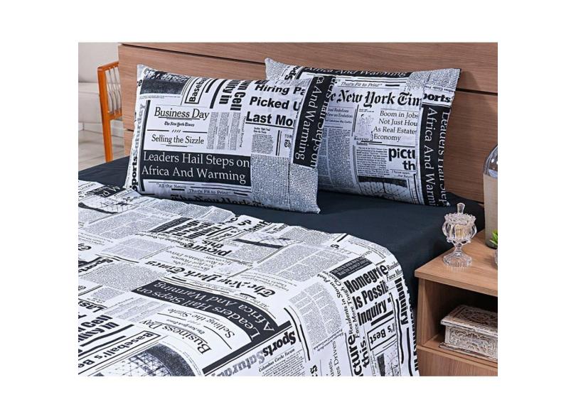 O menor preço encontrado no Brasil para Jogo Lençol 4 Peças Cama Viúva 1,88mx1,28mx30cm 100% Algodão 180 Fios Jornal Preto atualmente é R$ 219,99.
