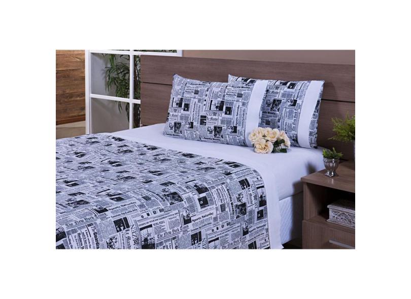 Jogo Lençol 4 Peças Cama Viúva1,88MX1,28M Percal Jornal