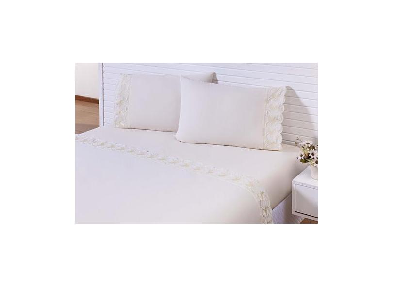Jogo Lençol 4 Peças Viúva 120X203x30 200 Fios Bordado - Mtr Enxovais L