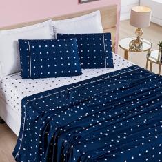 Jogo Lençol Casal Balls Micropercal 200fios 4 Pçs Marinho