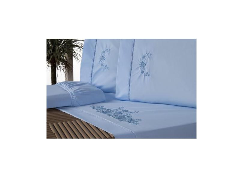 Jogo Lençol Casal Percal 200 Fios Bordado 100 % Algodão 4 Peças - Ingr
