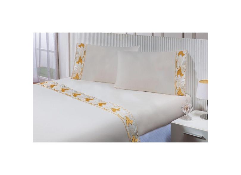O menor preço encontrado no Brasil para Jogo Lençol Casal Queen (1,98mx1,58mx35cm) 4 Peças 200 Fios 100% Algodão Barrado Bordado Tulipa Dourada atualmente é R$ 299,90.