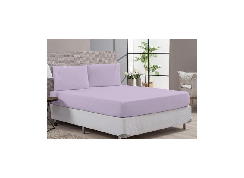 Jogo Lençol Com Fronha Ponto Palito 80% Algodão King Lilás - Beatriz E