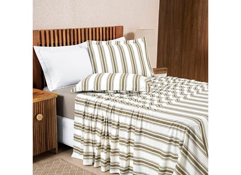 Jogo Lençol King 4 Peças 100% Algodão Malha Penteada Marin