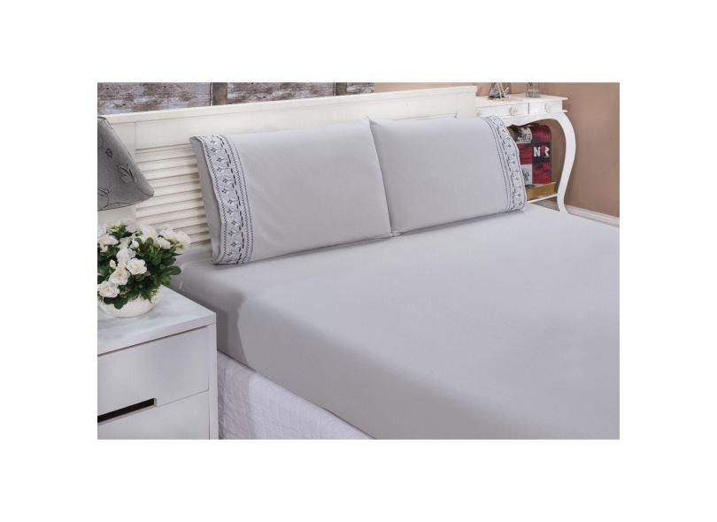 Jogo lençol king bordado 3 peças cinza tulipa quarto casal