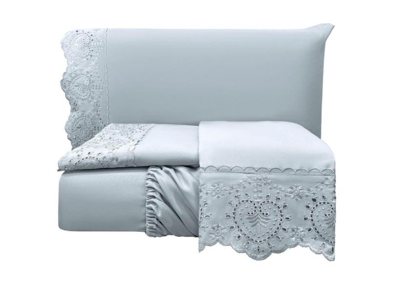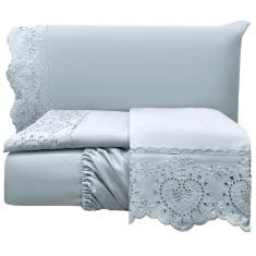 Jogo Lençol King Passione Bordado Inglês 4 pç Cinza